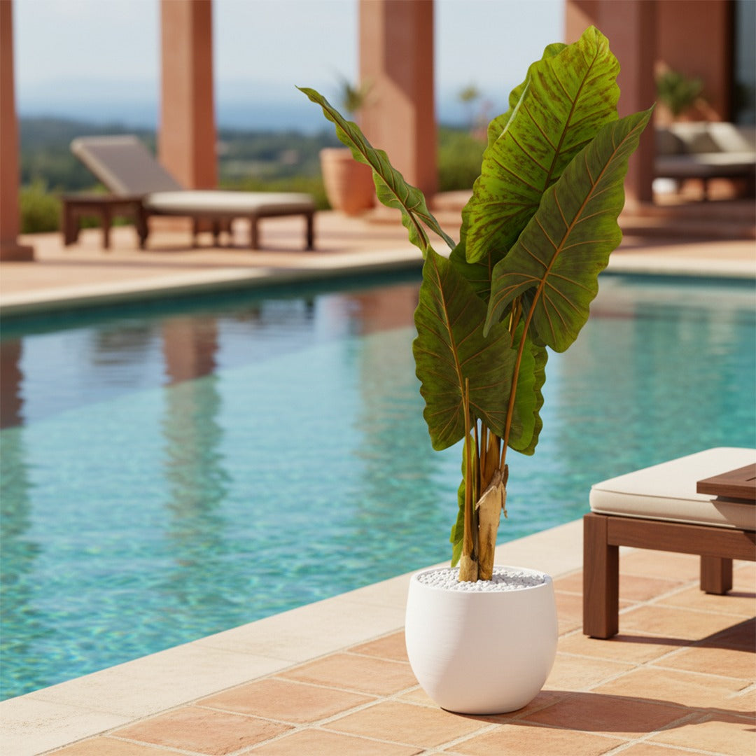 Add a bold, tropical accent to your indoor or outdoor décor with this Artificial Alocasia Plant from Ityadi Decor. Featuring broad, lush leaves and a sleek white pot, this piece brings natural charm without the need for watering or sunlight. Perfect for poolside areas, patios, or living spaces, it’s a stylish way to enjoy greenery that stays fresh all year round.