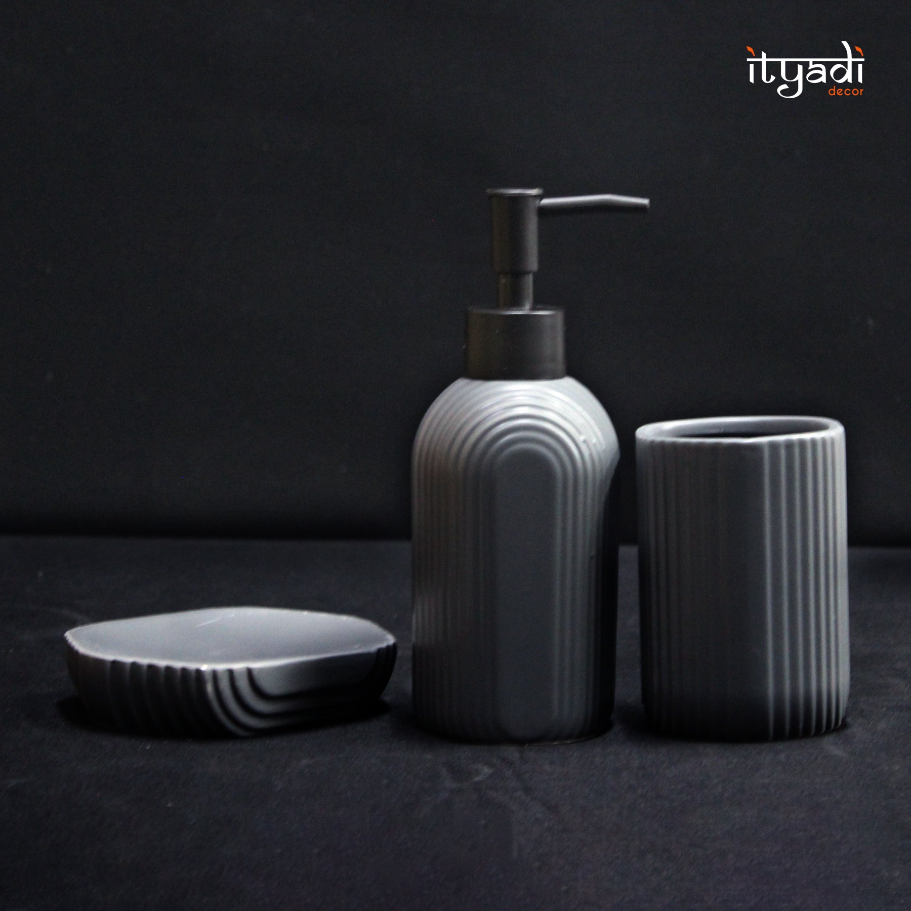 Elevate your bathroom décor with our premium designer accessories set that combines functionality and style for a luxurious bathing experience.