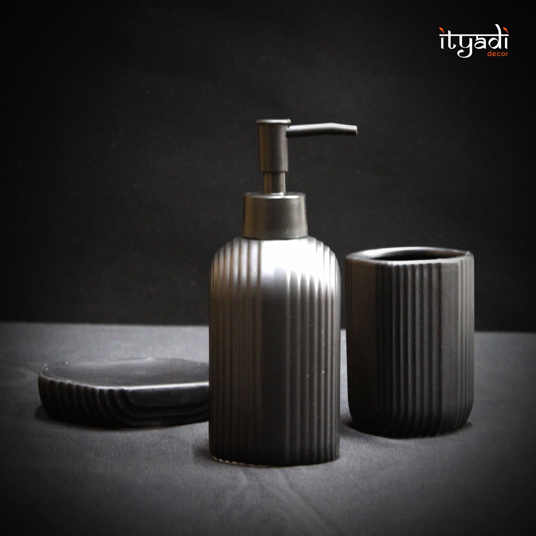 Elevate your bathroom décor with our premium designer accessories set that combines functionality and style for a luxurious bathing experience.