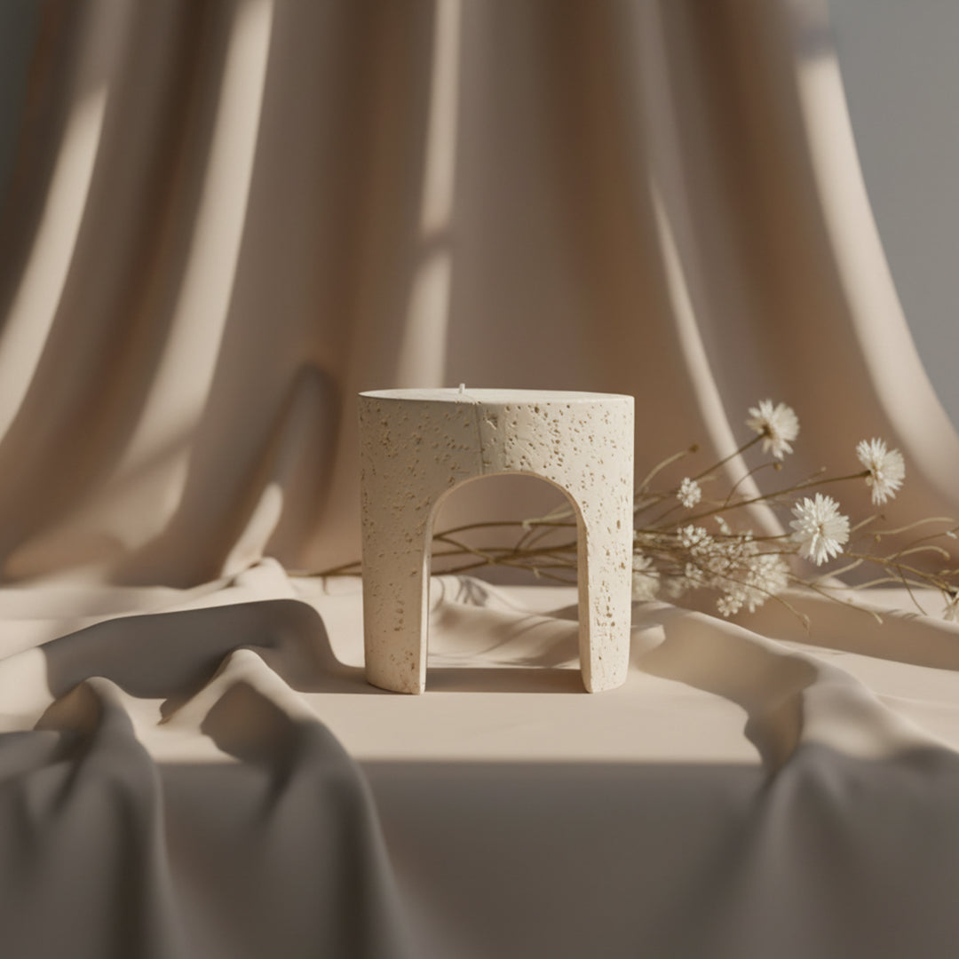 This versatile piece can be used as a small stool, or a stand for your favorite plant. It has a simple round top and three sturdy legs with arches in between. The light-colored, stone-like finish gives it a clean and modern look for any room.