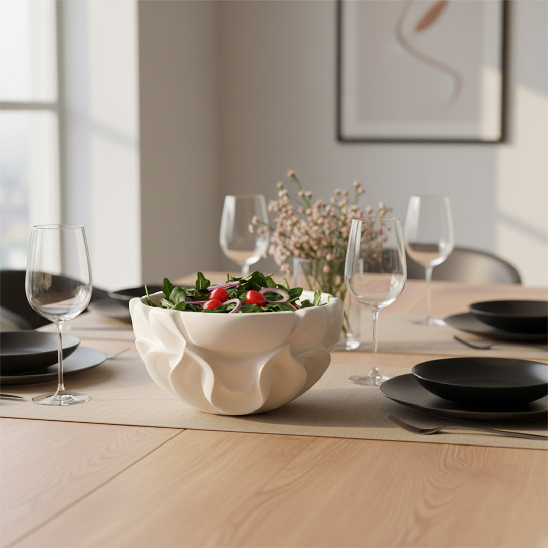 The vase has a glossy white finish and a stylish, fluted design on the bottom half. The clean, elegant look makes them perfect for holding flowers or simply as decorative pieces for any room in your home.