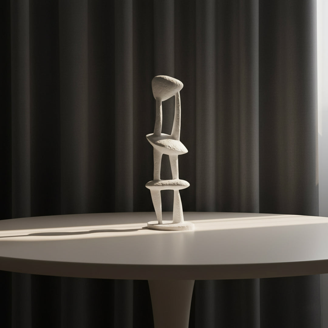 Inspired by the serene practice of stone balancing, our "Totem" sculptures bring a sense of natural calm to your interior. The design features a series of organic, pebble-like forms stacked in a seemingly gravity-defying arrangement. Available in two sizes, they are perfect for creating a harmonious display on a console, side table, or shelf.