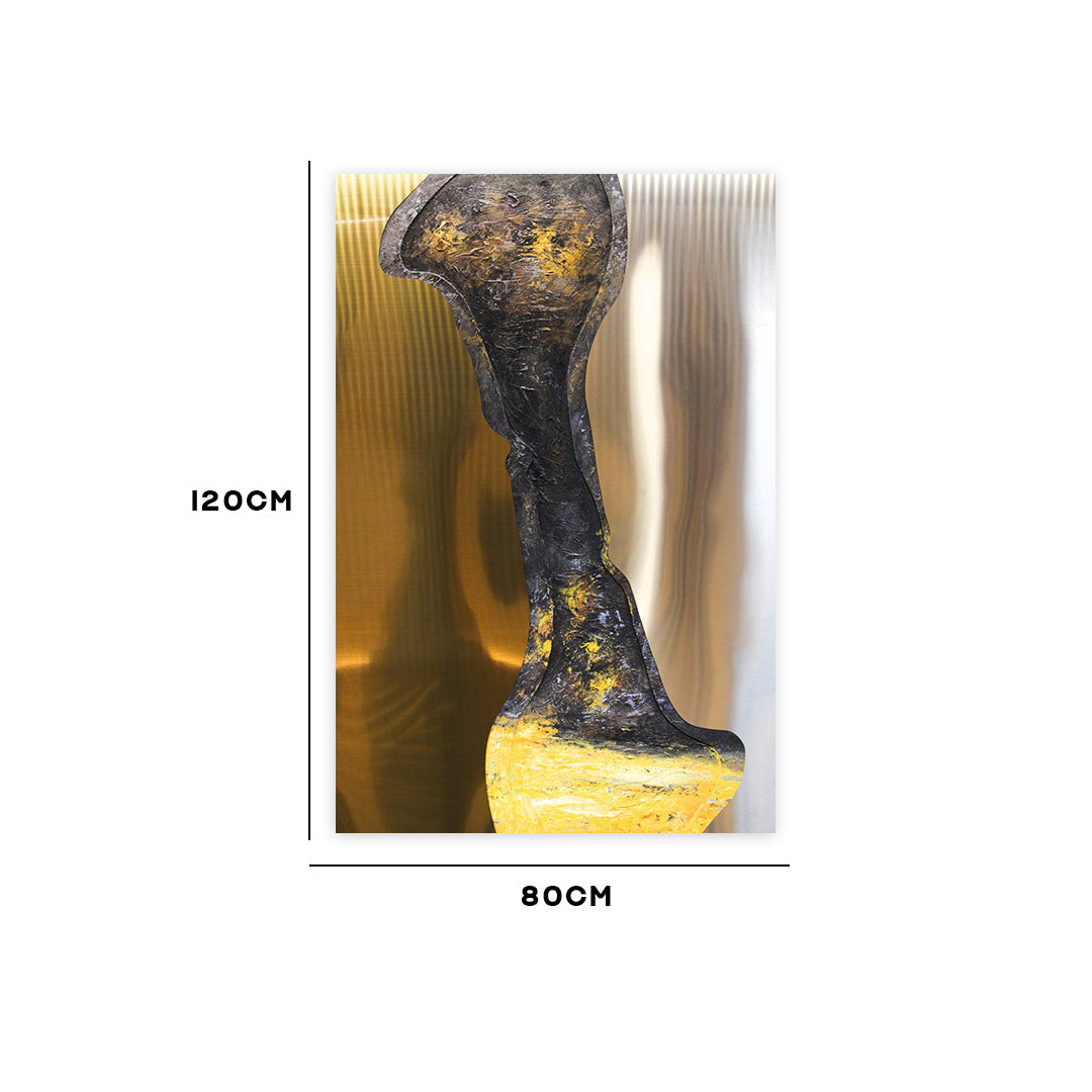 The Volcanic Glow Abstract Art is a stunning, high-gloss piece that commands attention. Featuring a bold, organic shape rendered in deep black, brilliant gold, and electric yellow tones, it creates a perfect statement piece for a grand entryway or modern living space.